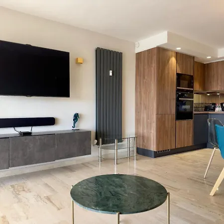 Die Ferienwohnung Sea View 4 People Terrace 60 M & Pool verfügt über einen Balkon, einen Ankleidebereich und eine Küche und Annehmlichkeiten wie eine Klimaanlage. In der Unterkunft sorgen eine begehbare Dusche und eine getrennte Toilette für Ihren Komfort. Außerdem gibt es einen Wäschetrockner.